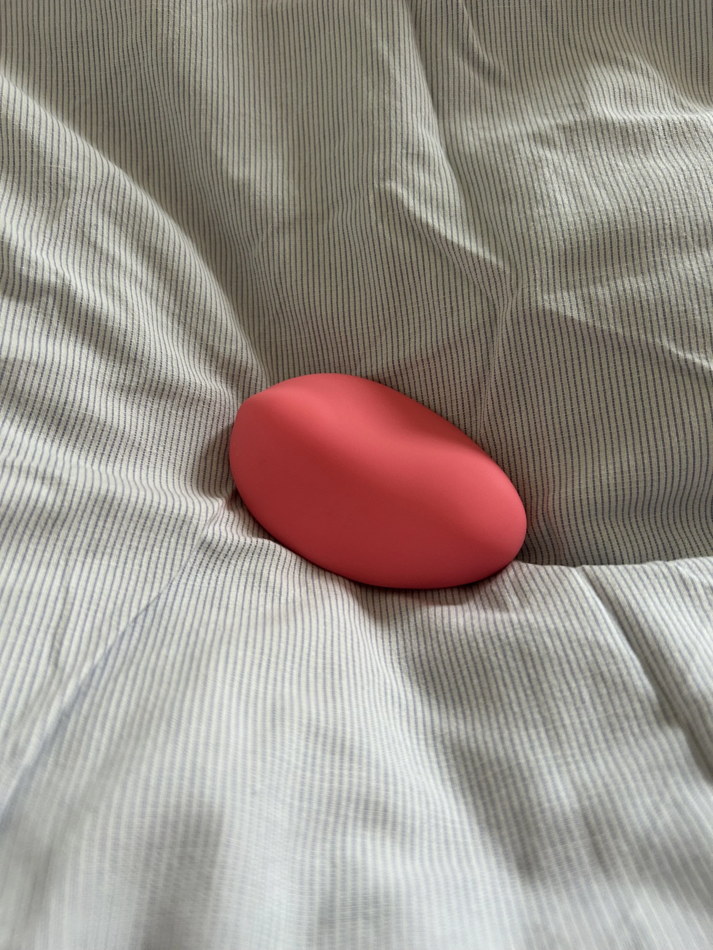 Inde i pakken finder jeg en lille rød vibrator belagt med silkeblød silikone. Jeg tager den op, og dens buede facon finder sig hurtigt til rette i min hånd. Formen på den gør, at jeg ikke behøver at klemme særligt hårdt om den for at have den i et sikkert greb, og efter at have holdt om den i noget tid, glemmer jeg næsten at tænke over, at den er der.